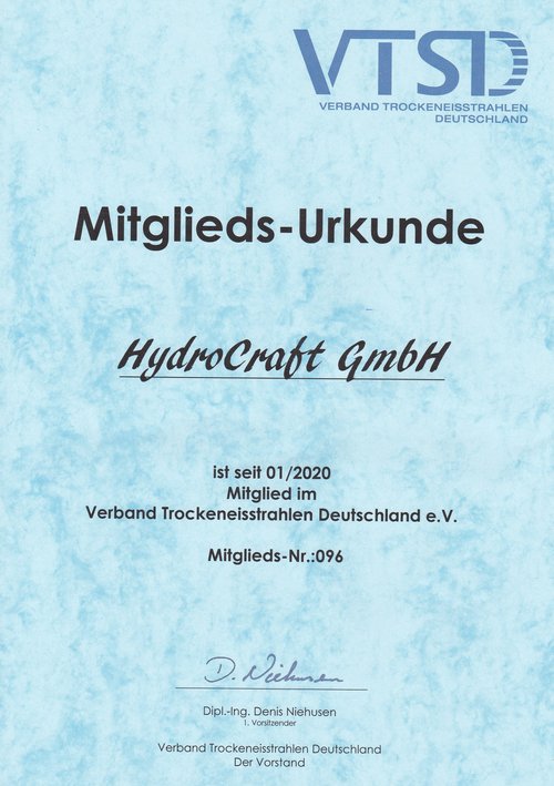 Unser Team ist vom Verband Trockeneisstrahlen Deutschland (VTSD) geschult und zertifiziert.